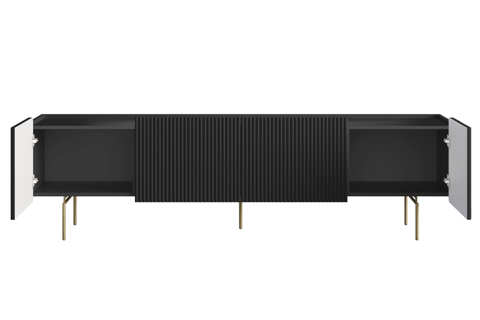 Malmi TV-meubel 200 cm met opbergruimte - Mat zwart | Gouden poten | 200x57x42 cm