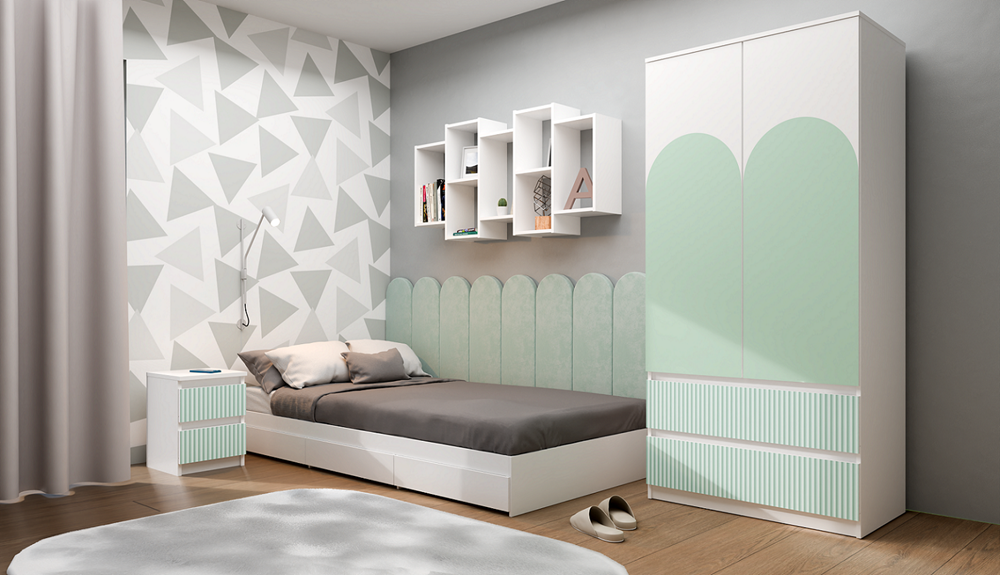 Modern nachtkastje MALWA M2 ARTESO - 2 lades, wit/mint met patroon | Kleur: Wit/Mint