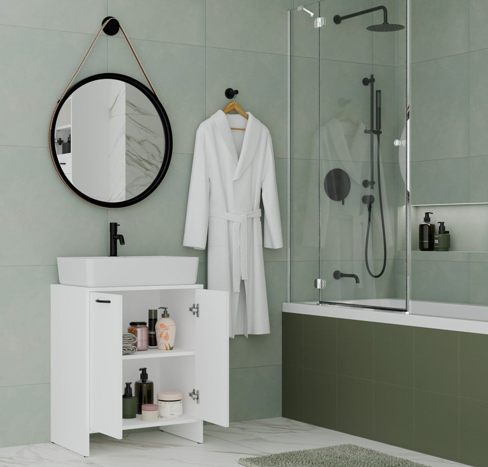 Moderne badkamerkast NINA 2DUM onder wastafel – 2 deuren, mat wit | Afm: 60x74x40 cm