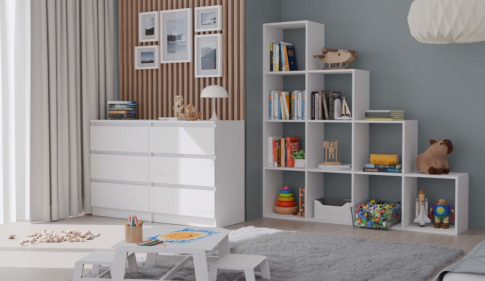 De STEP RS-40 compartimentenplank is een stijlvolle toevoeging aan elk modern interieur. Het tijdloze design in witte kleur maakt het een perfect decoratief en functioneel meubelstuk voor woonkamer, slaapkamer of als scheidingswand. Met zijn 10 ruime compartimenten organiseert u eenvoudig al uw accessoires, boeken of decoraties. Gemaakt door een Poolse fabrikant en vervaardigd uit duurzame gelamineerde spaanplaat, combineert deze plank gebruiksgemak met een hedendaags uiterlijk dat moeiteloos past in iedere inrichting.