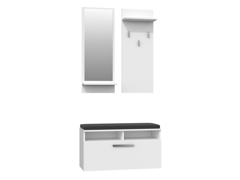 Moderne garderobe "RIVA" met spiegel, plank en schoenenkast | Kleur: Wit | Afmetingen: 85x46x90 cm