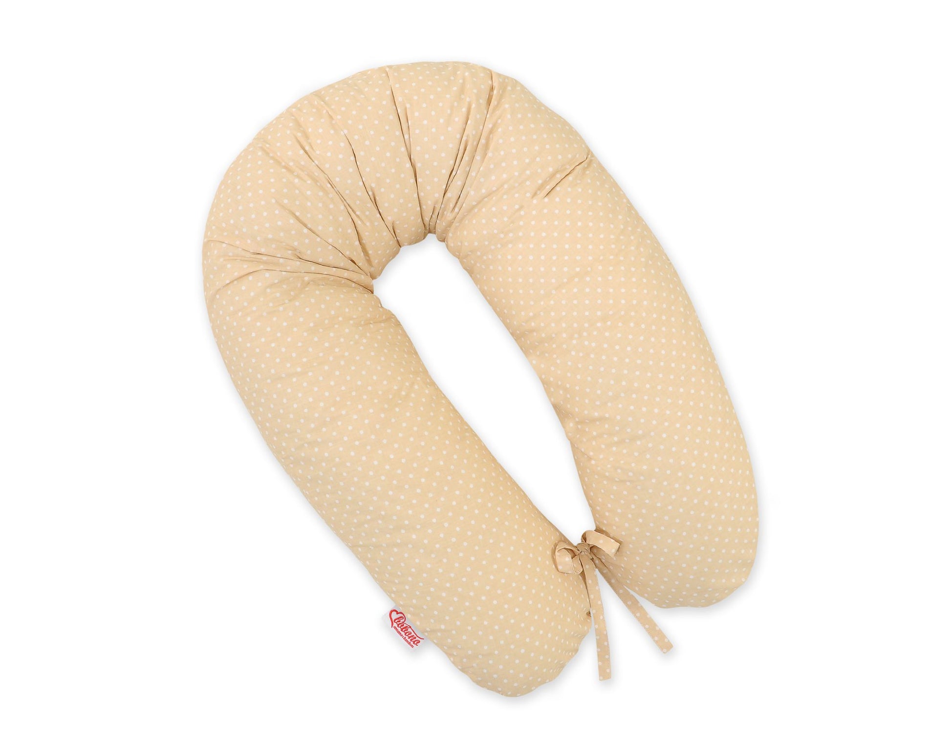 Multifunctioneel zwangerschapskussen Longer - Wit met beige polkadots
