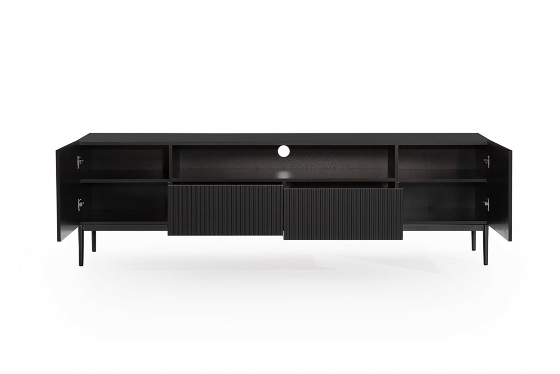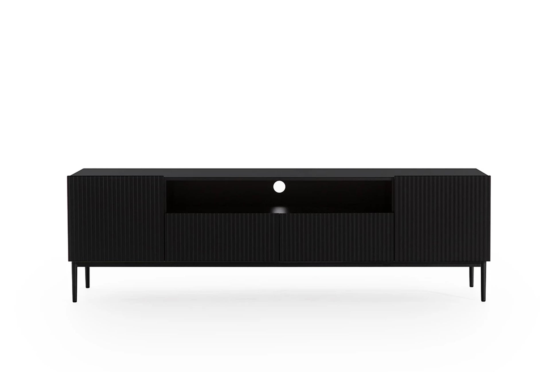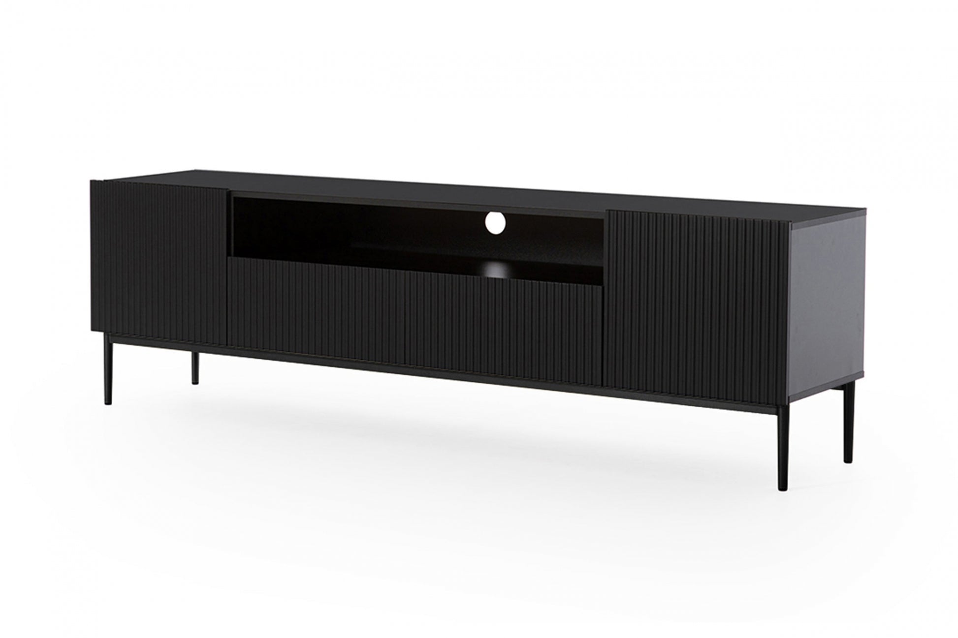 Nicole TV-meubel 200 cm met nis en lades – matzwart/zwarte poten