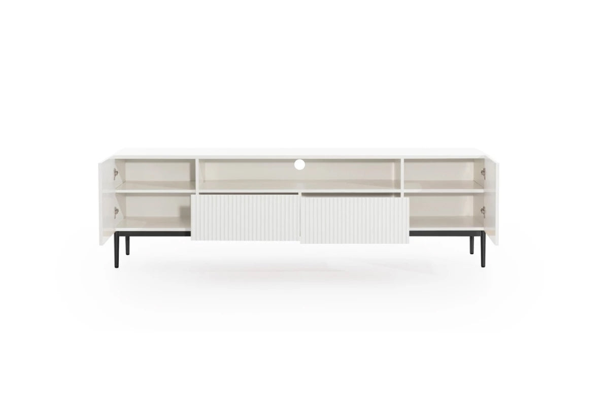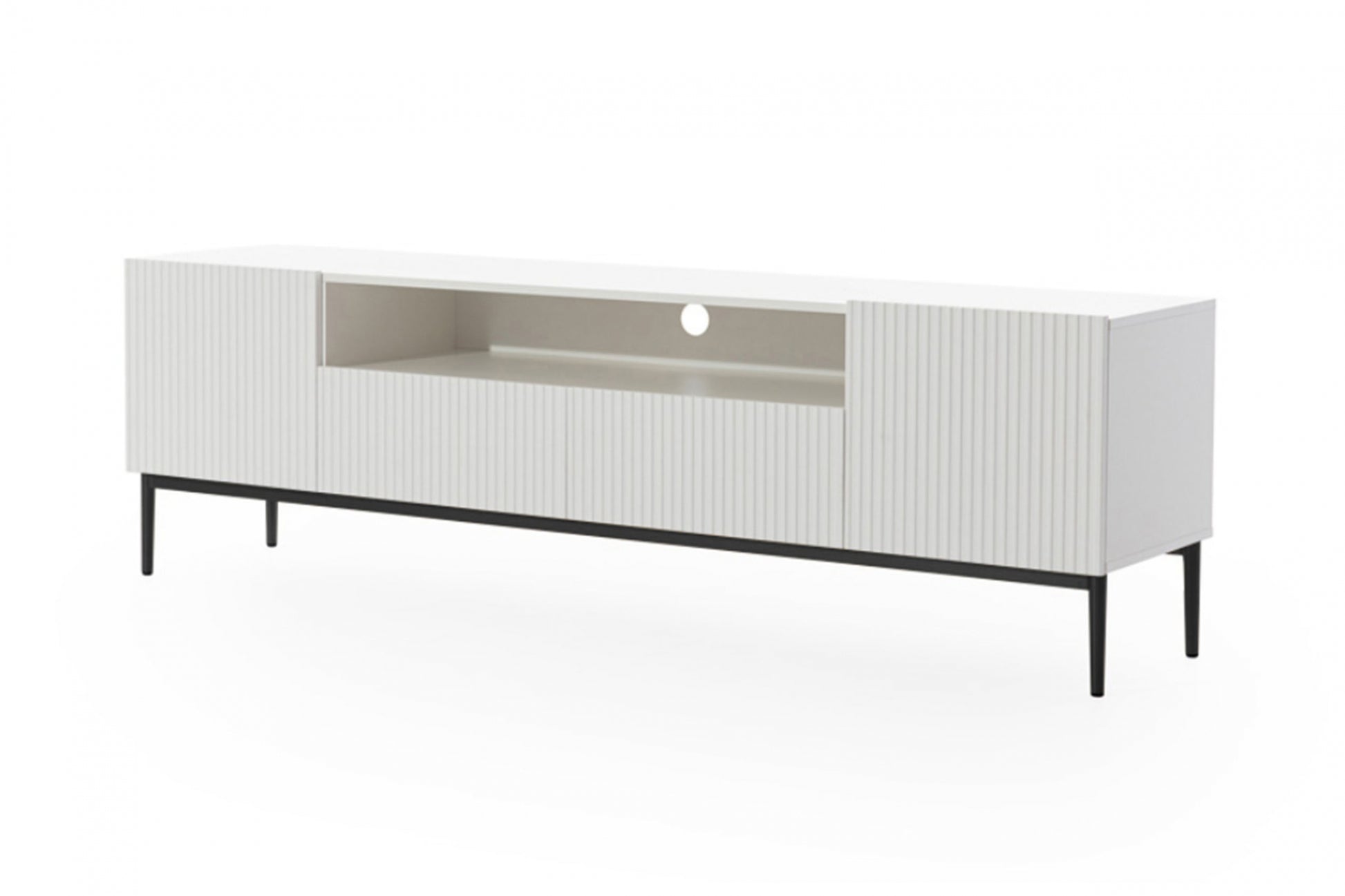 Nicole TV-meubel 200 cm met nis en lades – Wit Mat/Zwarte Poten