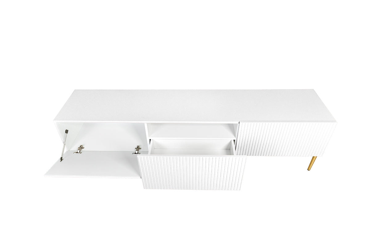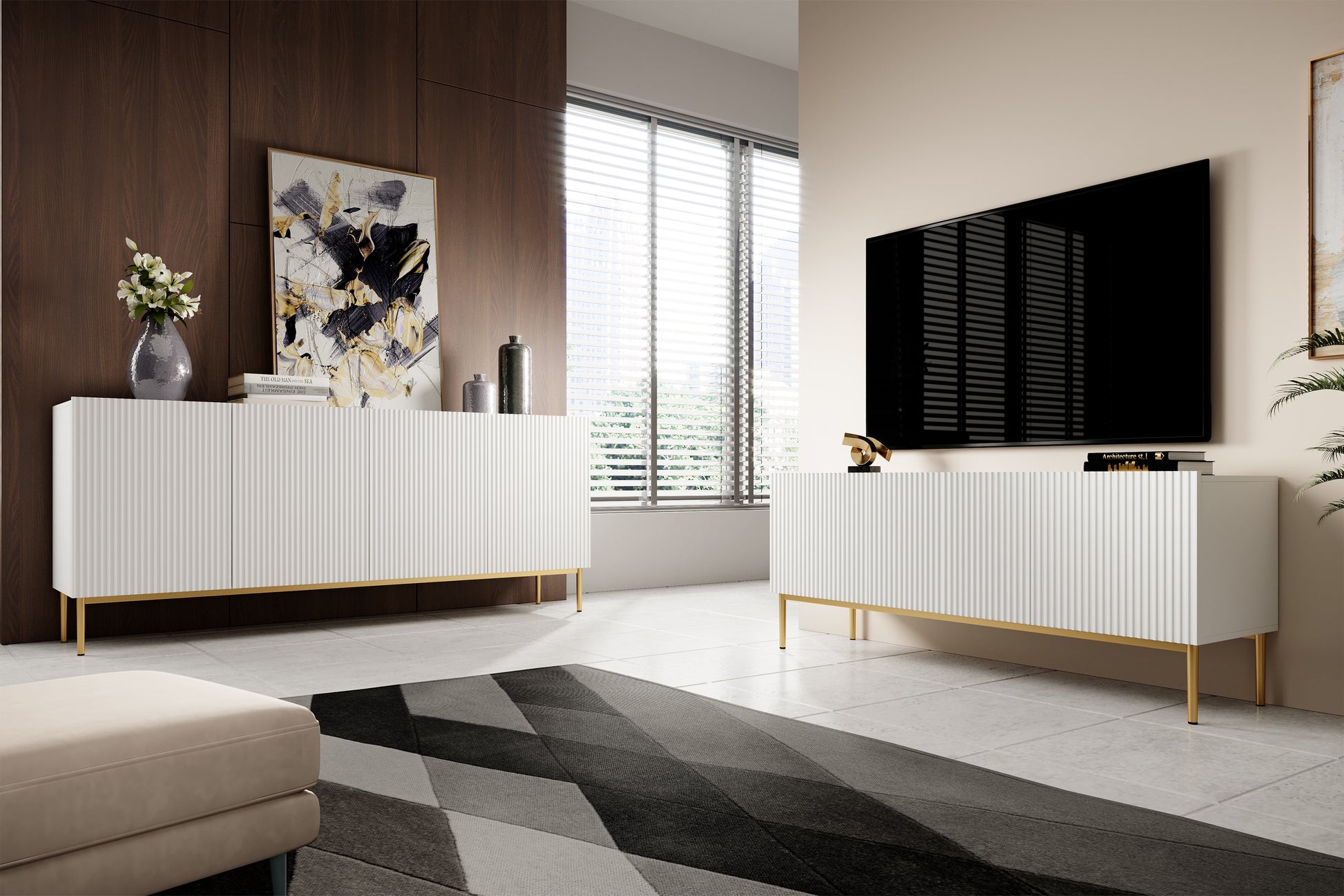 Nicole TV-meubel met lade 200 cm – Mat Wit met Gouden Poten
