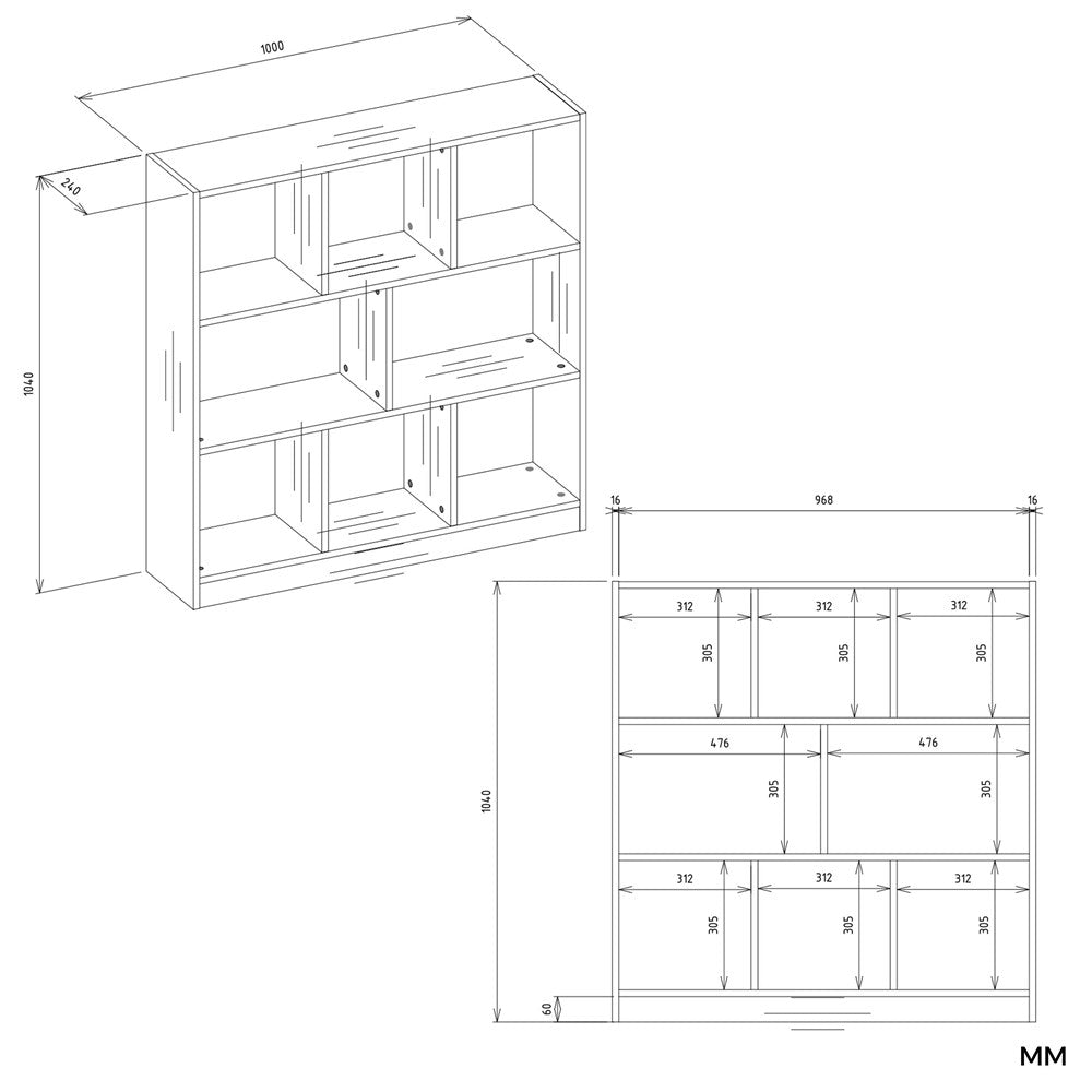 - Materiaal: 100% gelamineerde spaanplaat, 16 mm dik