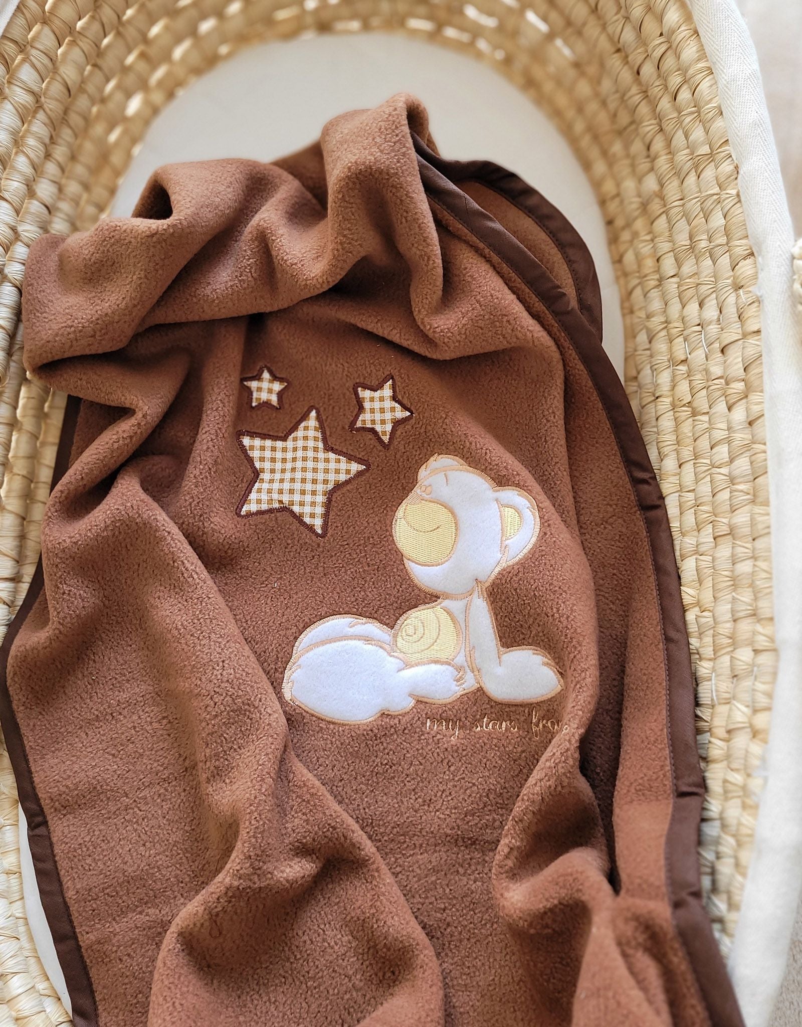 Polar fleece deken voor baby's - Carlo Teddy Beer met Sterren bruin