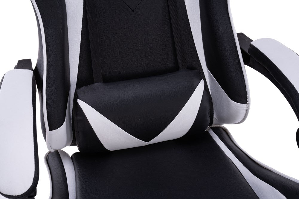 De Remus Gaming Draaistoel in het wit is speciaal ontworpen voor gamers, studenten en professionals die comfort en stijl zoeken. Dankzij de ergonomisch gevormde zitting en rugleuning, brengt deze stoel lange werksessies of gamemomenten naar een hoger niveau. Je ontvangt twee verstelbare kussens voor nek en onderrug, ideaal voor een gezonde zithouding. De stoel beschikt over een eersteklas gasveer voor soepele hoogteverstelling en een rugleuning die tot bijna 180° achterover kan leunen. De duurzame chromen voet en stevige kunststof wielen garanderen jarenlang gebruiksplezier.