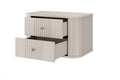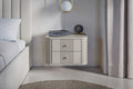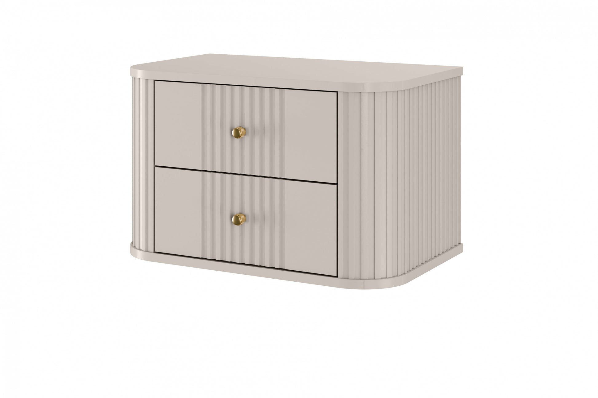 Geef je slaapkamer een luxueuze en moderne uitstraling met de Set Vesper hangende nachtkastjes (56 cm) in kasjmier met gouden handgrepen. Het matte, crèmekleurige oppervlak en de elegante, geribbelde MDF-fronten creëren direct een stijlvolle sfeer. Dankzij de afgeronde randen ogen de kastjes subtiel en zorgen ze voor extra veiligheid. De set bestaat uit twee nachtkastjes met elk twee ruime lades, ideaal om al je essentials netjes op te bergen. De hoogwaardige constructie van gelamineerd karton en duurzaam MDF garandeert jarenlang plezier van deze eyecatcher.