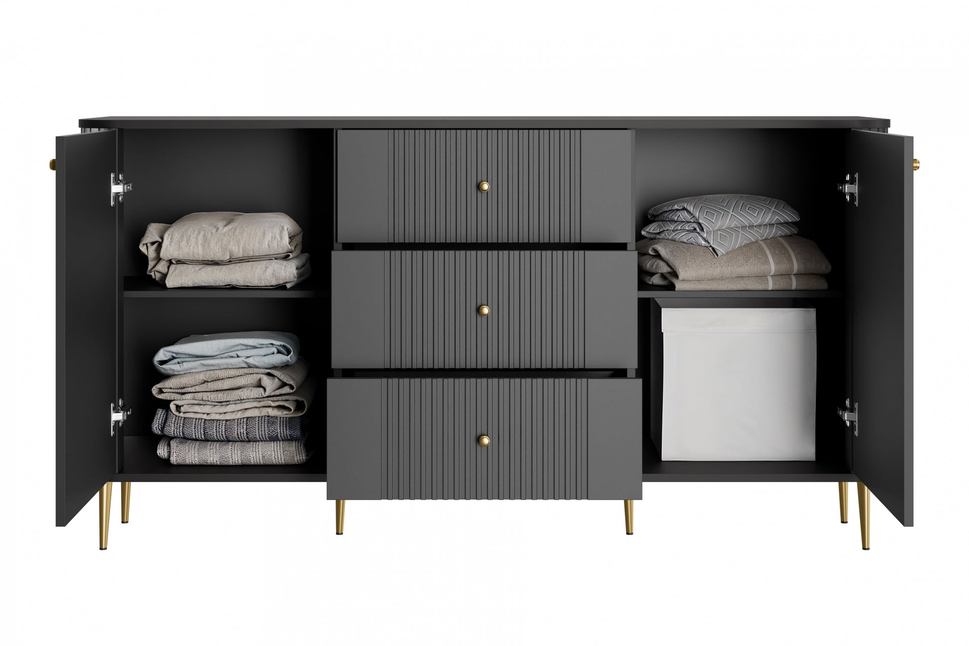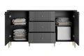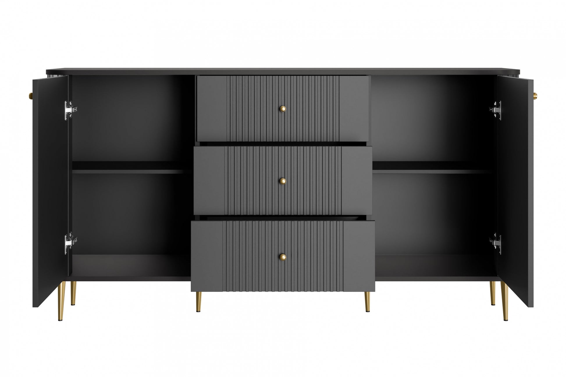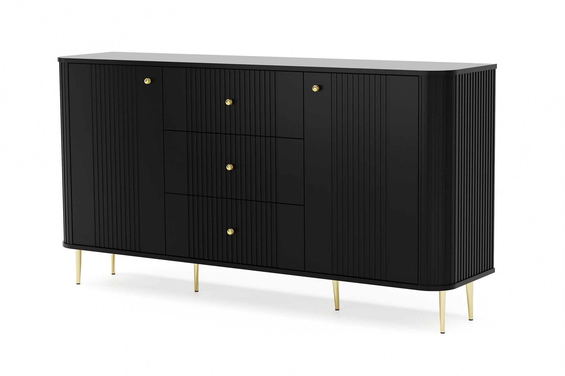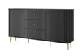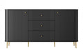 Vesper ladekast 160 cm - Ruime ladekast met 2 deuren en 3 lades | Kleur: Zwart met gouden poten