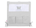 Praktische wieg organizer in grijs uit de collectie Kleine Prins/Prinses, met 6 handige opbergvakjes voor speelgoed, luiers, doekjes, speentjes en andere essentiële spullen.