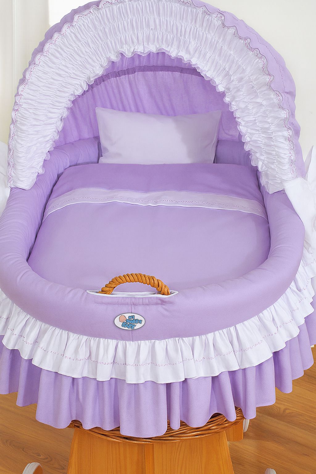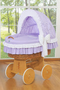 Wicker Mand wieg Bellamy - natuurlijk + lila beddengoed