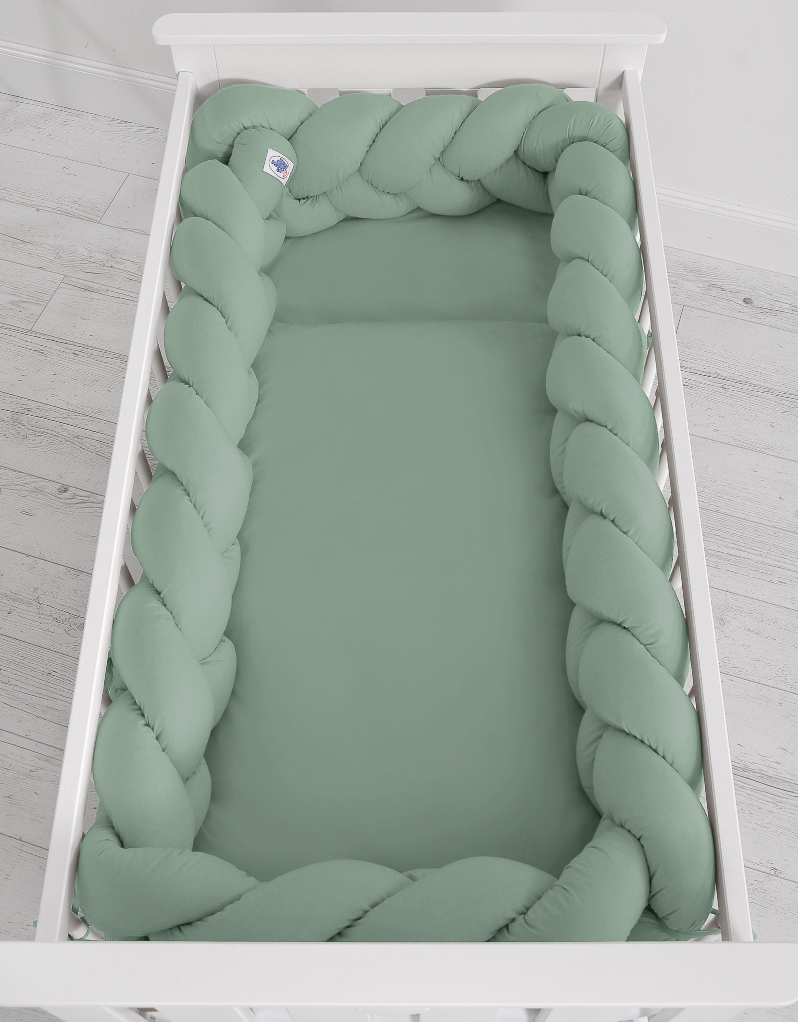 Wiegbumper XXL, gevlochten stootrand, extra luchtdoorlatend – 100% katoen – pastelgroen