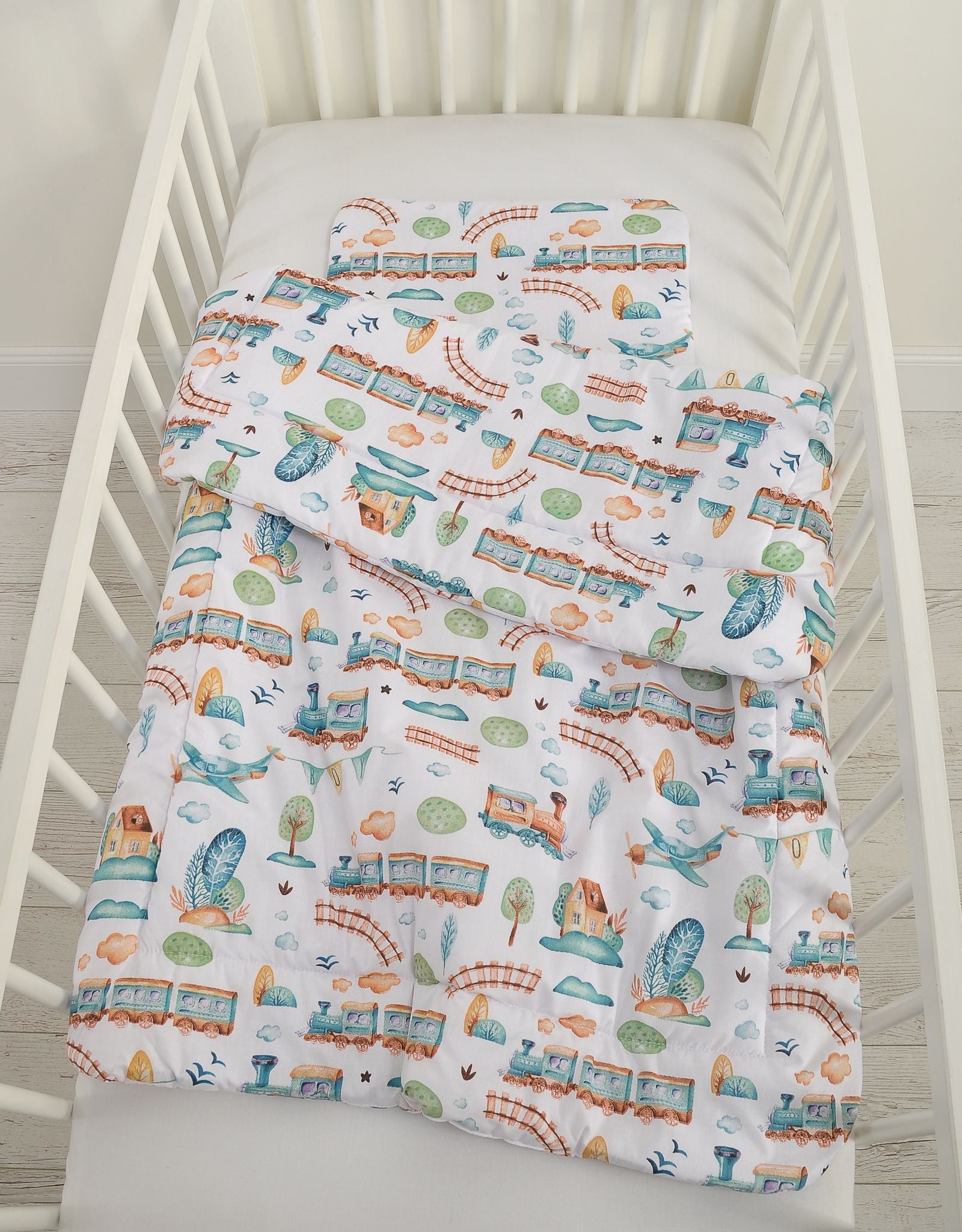 2-delig beddengoed set met vulling 135x100 cm - turquoise trein