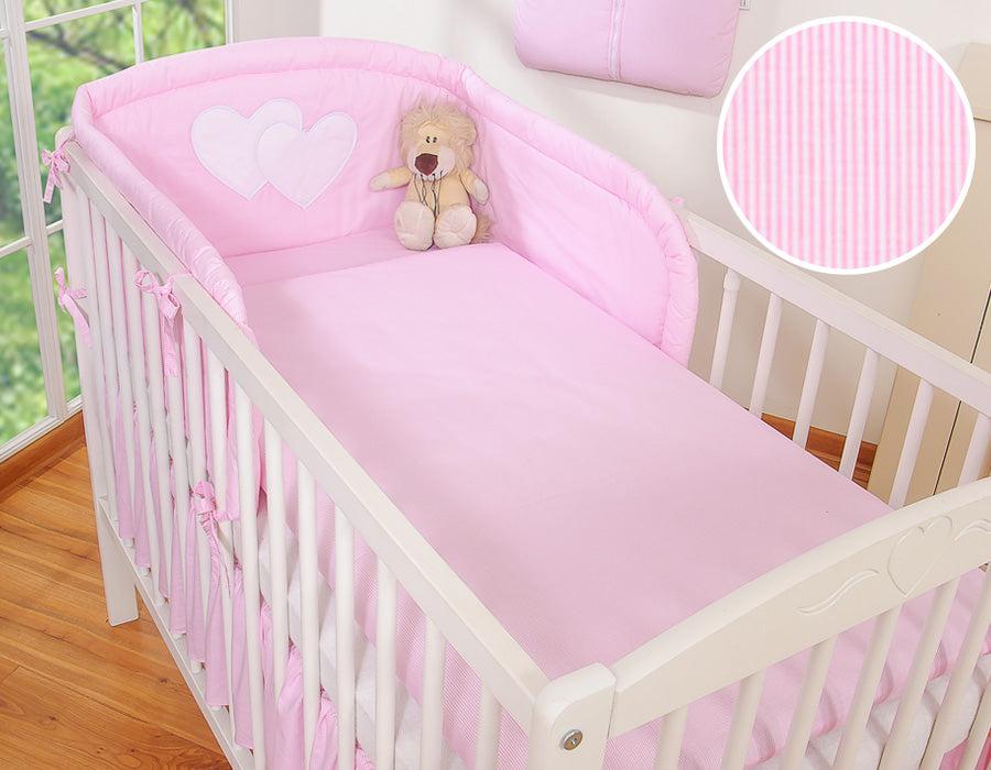 2-delige Beddenset – Hanging Hearts Roze Strepen