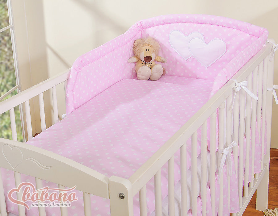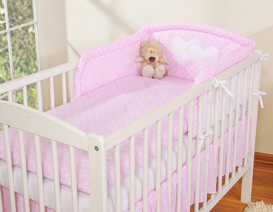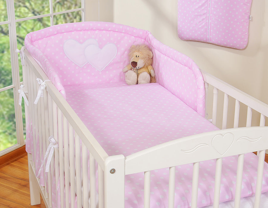 2-delige Beddenset - Hanging Hearts wit stippen op roze