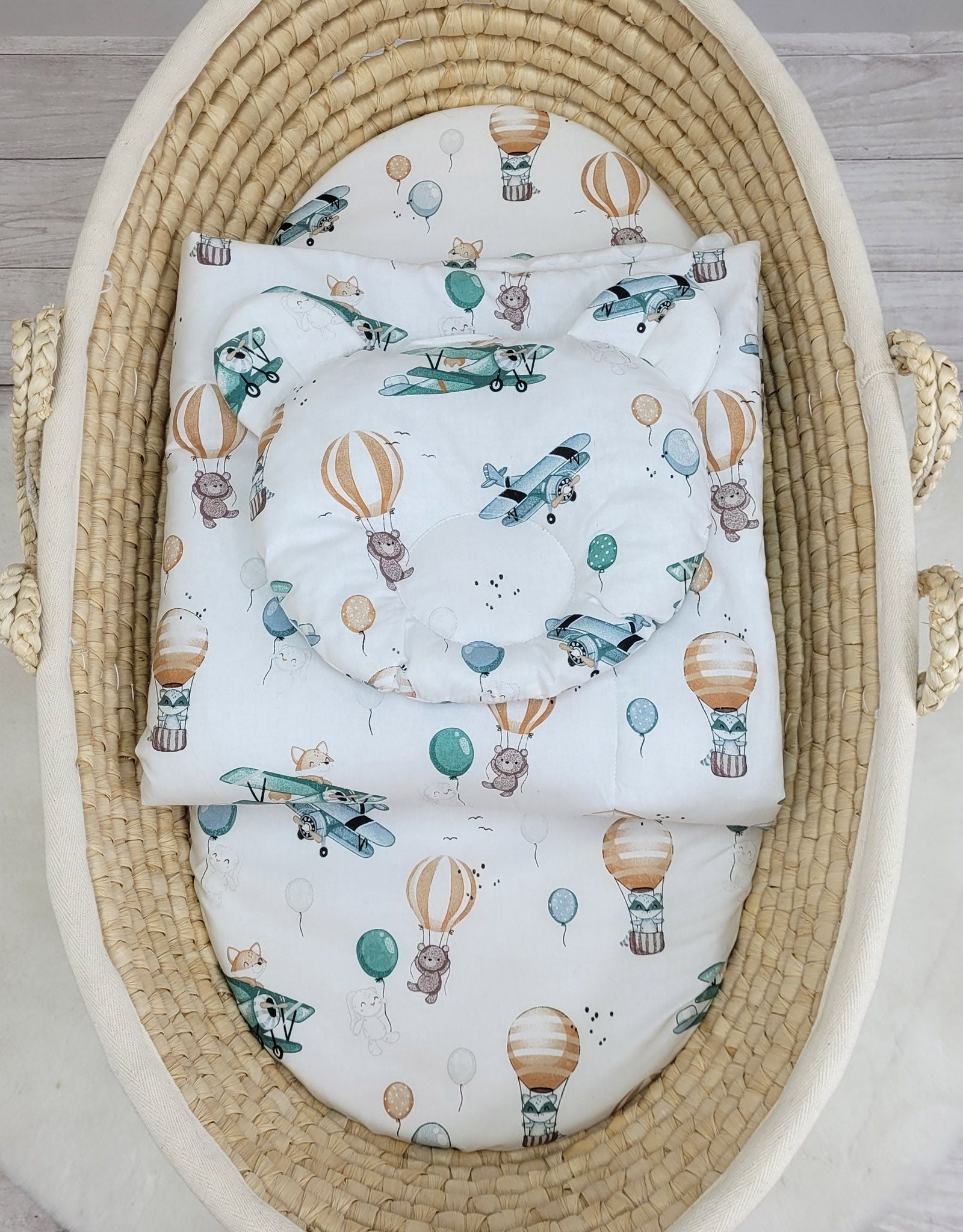 Ontdek het zachte comfort van onze premium babybeddenset, bestaande uit een dekentje en een schattig teddybeer-kussen, speciaal ontworpen voor wiegendragen, kinderwagens en ledikanten. Gemaakt van hoogwaardig, Oeko-Tex-gecertificeerd katoen en vulling zonder optische witmakers, zorgt deze set voor een veilige en aangename slaapomgeving voor uw kleintje.