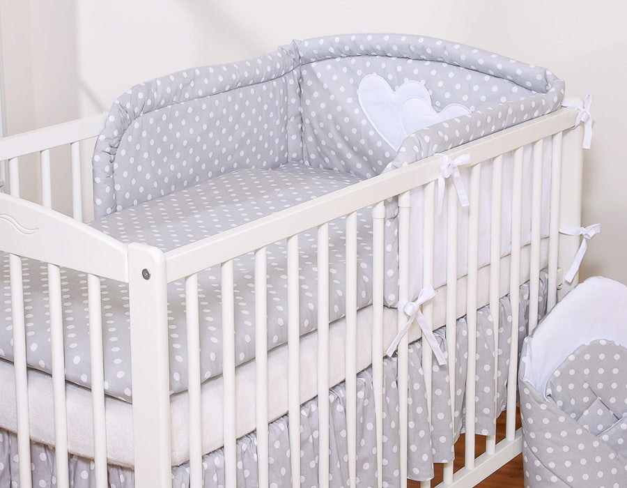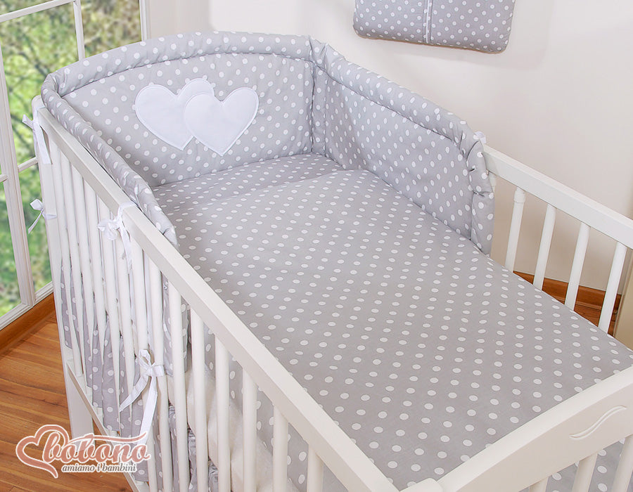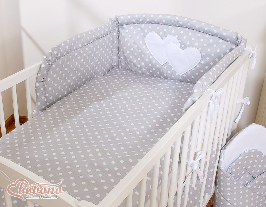 2-delige Kinderbeddenset - Hanging Hearts wit met grijze stippen