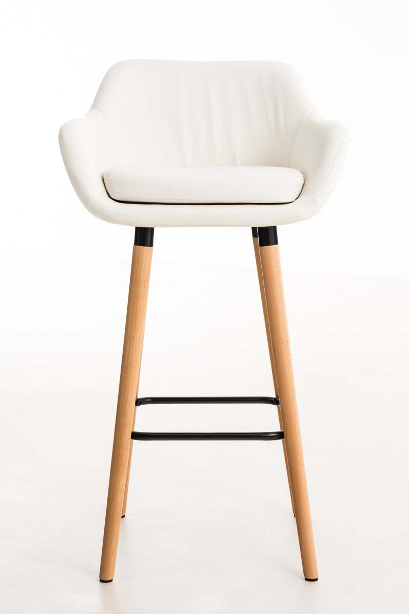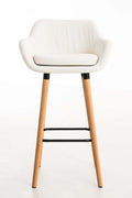 Deze barkrukken brengen iets bijzonders naar elke bar. Ontworpen met een fauteuil-achtige stijl, trekken ze de aandacht met hun unieke uiterlijk. Dankzij de rugleuning en vorm is langdurig comfort gegarandeerd. De kunstleren bekleding en het afneembare kussen maken schoonmaken eenvoudig. De zitting blijft op zijn plaats dankzij het klittenband. Daarnaast kan de kussenhoes eenvoudig worden verwijderd en gewassen dankzij de ritssluiting. Het stabiele vierpotige frame van beukenhout is voorzien van een subtiele metalen voetsteun, wat het ontwerp van de kruk compleet maakt.