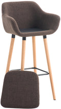 Deze set van 2 stijlvolle barkrukken geeft elke bar een extra charme. Ontworpen als een comfortabele fauteuil, valt deze stoel op door zijn unieke uitstraling. Met een rugleuning en ergonomische vorm kun je meerdere uren comfortabel zitten. De stoel is voorzien van een stoffen bekleding en een afneembaar kussen dat eenvoudig te reinigen is. Met klittenband blijft de zitting stevig op zijn plaats. Daarnaast is de hoes van het zitkussen gemakkelijk afneembaar en, dankzij een ritssluiting, uitwasbaar. Het stevige vierpootframe van beukenhout is uitgerust met een discrete metalen voetsteun en rondt het ontwerp van de kruk stijlvol af.