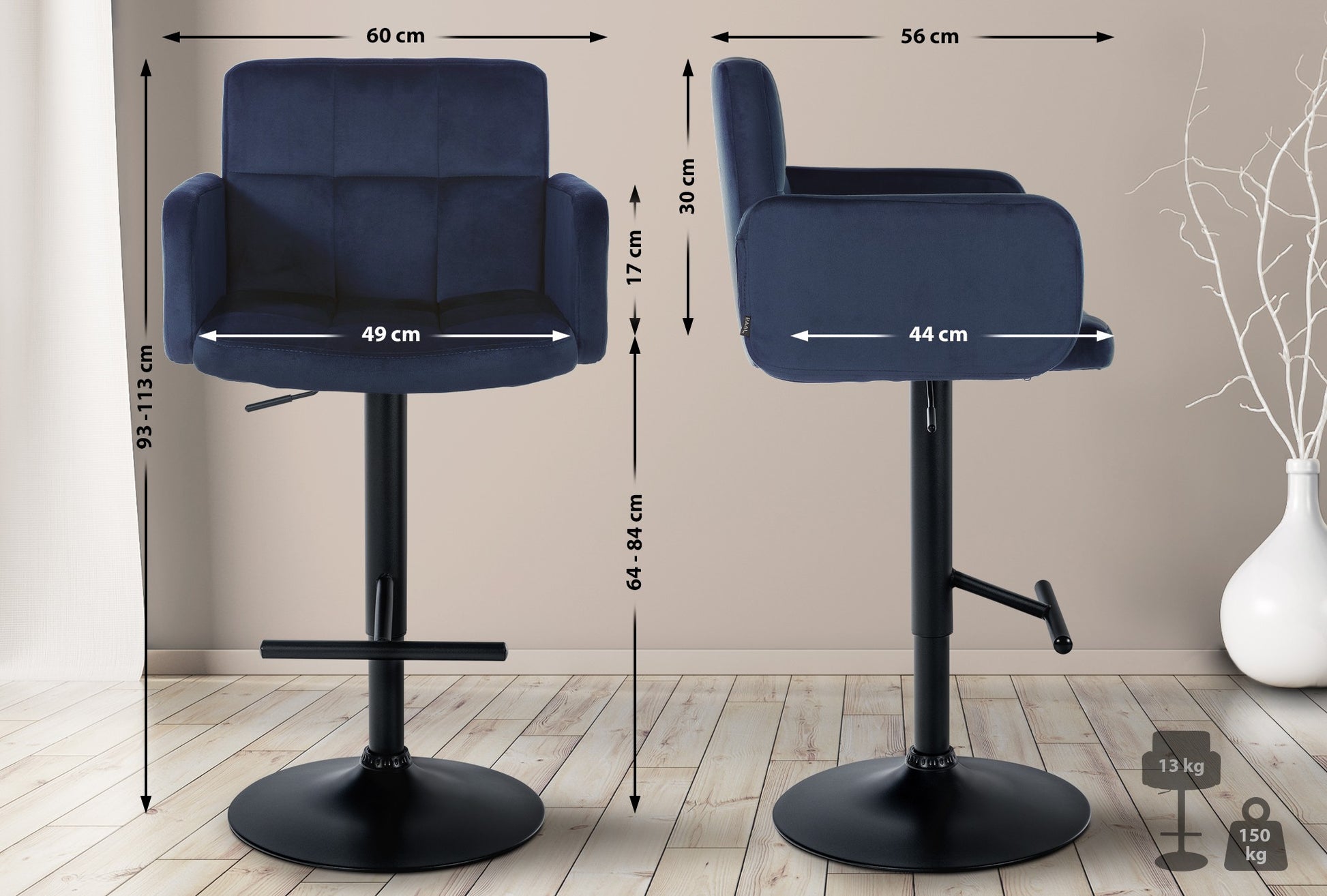 Set van 2 barkrukken in fluweel, blauw en zwart