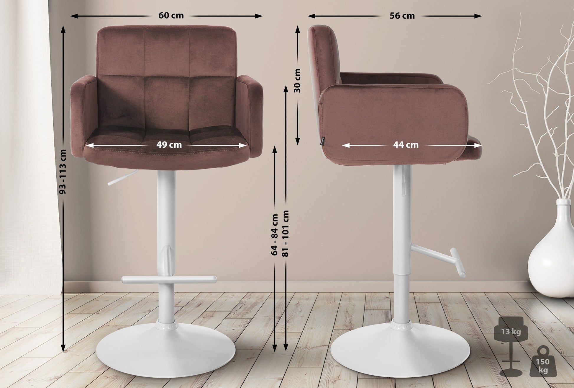 2-delige set Barkrukken - Fluwelen Stoelen - Verstelbaar, 360° draaibaar, extra zitcomfort