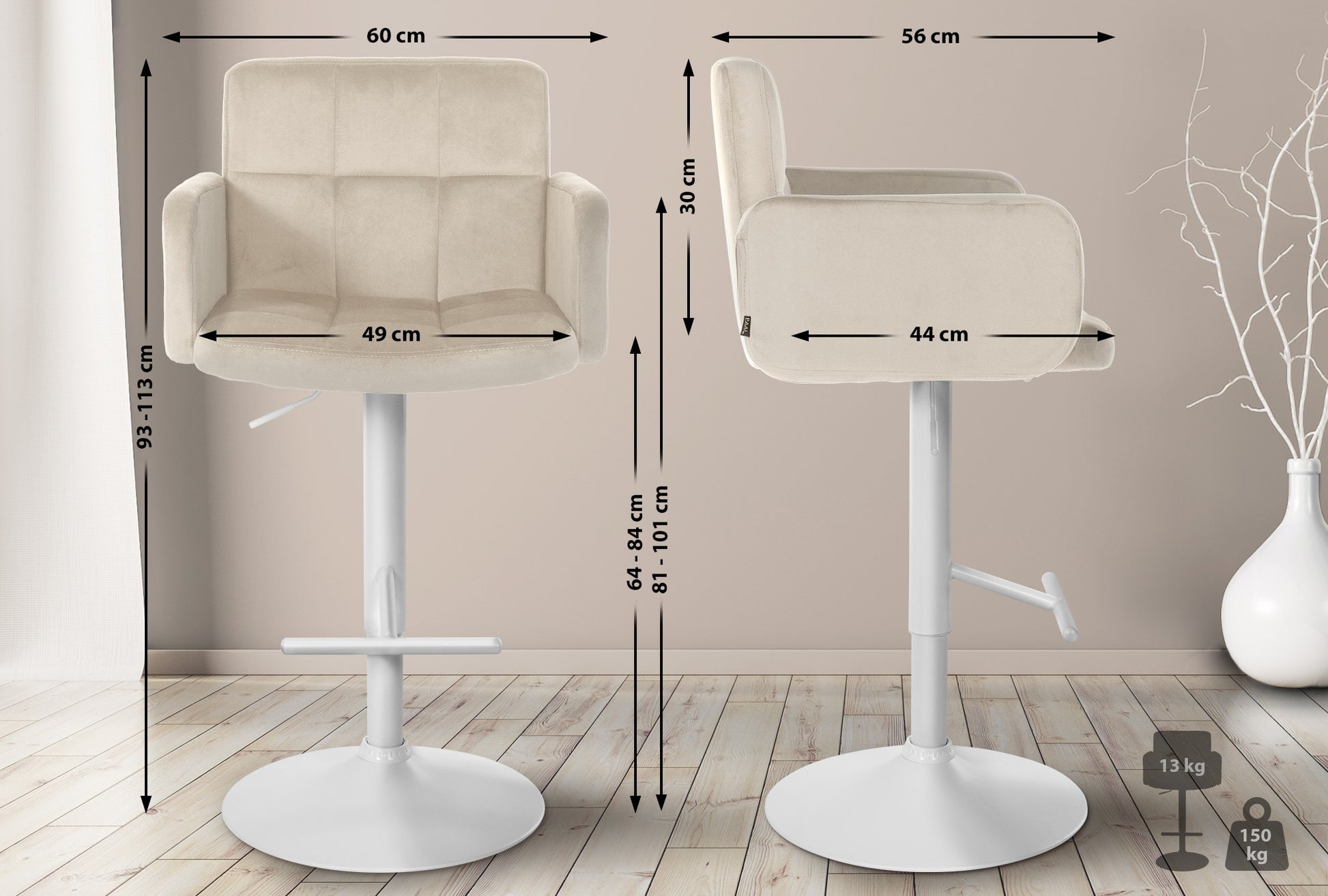 2-delige set Barkrukken - Fluwelen stoelen - Verstelbaar & 360° draaibaar - Hoog zitcomfort