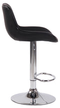 Deze barkrukken geven elke ruimte een exclusieve uitstraling en overtuigen niet alleen met hun uitstekende zitcomfort, maar ook met hun moderne design. De zitting is bekleed met onderhoudsvriendelijk kunstleer. Dankzij het gasmechanisme kan de hoogte van dit model traploos worden aangepast, waardoor het ideaal is voor elke hoogte van de toonbank. De voetsteun, die voor extra zitcomfort zorgt, kan synchroon met de zittinghoogte worden versteld. De zitting kan samen met de voetsteun 360° gedraaid worden. Het frame is verkrijgbaar in chroomlook, wit of zwart metaal. Daarnaast zijn er vloerbeschermers onder de trompetvoet bevestigd om krassen op oppervlakken te voorkomen.