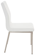 Deze design eetkamerstoelen zijn comfortabele, stevige en toch stijlvolle stoelen voor dagelijks gebruik. Ze vormen de perfecte aanvulling op modern ingerichte kamers en de krachtige kleuren stralen een jeugdige charme uit. Met de brede zitting en hoge rugleuning zit je comfortabel, zelfs voor langere tijd. De aangenaam gestoffeerde stoelen met fijne kunstlederen bekleding beloven comfort en zien er gewoon chic uit. Dankzij onderhoudsvriendelijke materialen zijn de stoelen ook snel en gemakkelijk te reinigen. Deze praktische eetkamerstoelen staan bijzonder stabiel op hun vier roestvrijstalen poten.