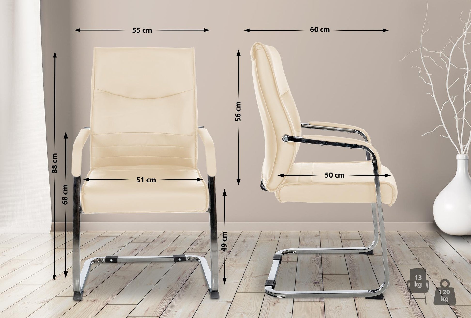 De set van 2 bezoekersstoelen staat symbool voor elegantie en functionaliteit, ideaal voor zowel kantooromgevingen als wachtruimtes. Dankzij de hoogwaardige afwerking met kunstleer of stof, voorzien van comfortabele armleuningen en ergonomische rugleuningen, bieden beide stoelen uitstekend zitcomfort en ondersteunen ze een gezonde zithouding. Uitgerust met vloerbeschermers en een stevig chromen frame zorgen ze voor stabiliteit en beschermen ze de vloeren tegen krassen, terwijl ze een draagvermogen tot 120 kg per stoel hebben. Met hun moderne en tijdloze ontwerp passen deze stoelen perfect in elk interieur en bieden ze stijlvolle zitplekken die eenvoudig te monteren zijn.