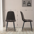 De stoelen zijn bekleed met een hoogwaardige stof die zowel elegant als slijtvast is. Het stevige vierpootsframe van zwart, gepoedercoat metaal zorgt voor stabiliteit en kan tot 150 kilogram dragen. Vloerbeschermers onder de poten voorkomen schade aan gevoelige vloeren.