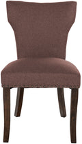 De eetkamerstoel biedt met zijn gestoffeerde zitting en rugleuning een uitstekend zitcomfort voor ontspannen maaltijden of lange gesprekken aan de eettafel. De stofbekleding met een aantrekkelijke uitstraling en het subtiele klinknageldecor geven de stoel een tijdloze elegantie die elke eetkamer verfraait. De stoel is veelzijdig in gebruik en past perfect in eetkamers, maar ook in andere woonruimtes en de keuken. De robuuste houten poten met een antiek uiterlijk bieden stabiliteit en veerkracht, terwijl vloerbeschermers gevoelige vloeren beschermen tegen beschadiging. Dankzij het onderhoudsvriendelijke oppervlak blijft de gestoffeerde stoel lang mooi en uitnodigend.