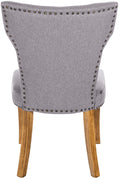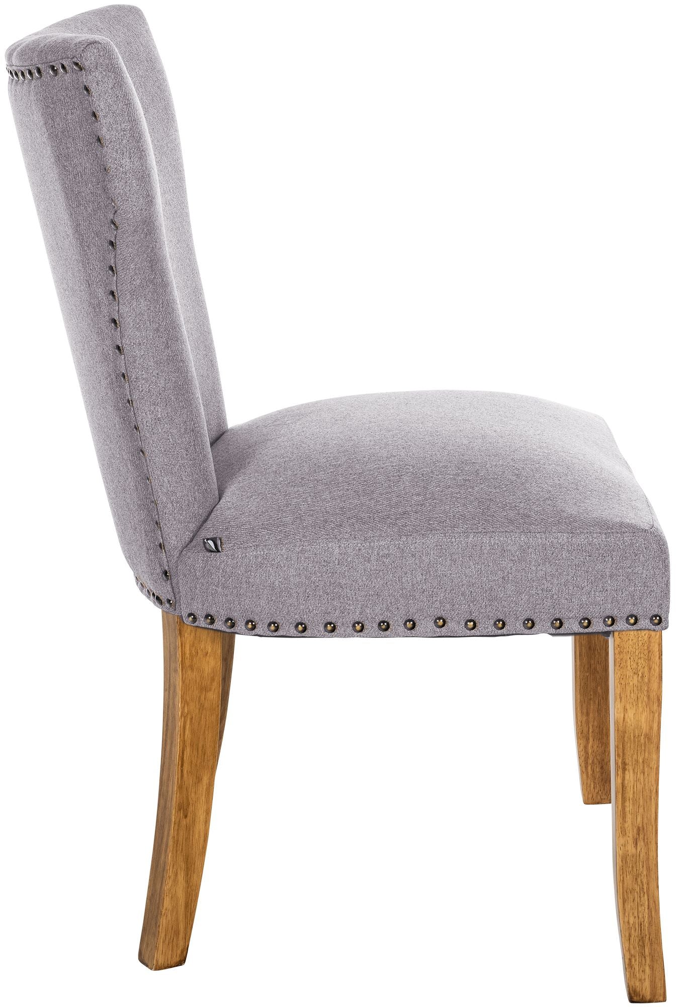 Deze set van eetkamerstoelen biedt uitstekend zitcomfort dankzij de gestoffeerde zitting en rugleuning, perfect voor ontspannen diners of lange gesprekken aan tafel. Met een aantrekkelijke stoffering en subtiele klinknageldecoratie, voegen de stoelen een tijdloze elegantie toe aan elke eetkamer. De veelzijdigheid van de stoelen maakt ze niet alleen geschikt voor de eetkamer, maar ook voor andere woonruimtes en de keuken. De robuuste houten poten met een antieke uitstraling zorgen voor stabiliteit en duurzaamheid, terwijl de vloerglijders vloerbeschadiging voorkomen. Het onderhoudsvriendelijke oppervlak zorgt ervoor dat de stoelen er lang mooi en uitnodigend uitzien.