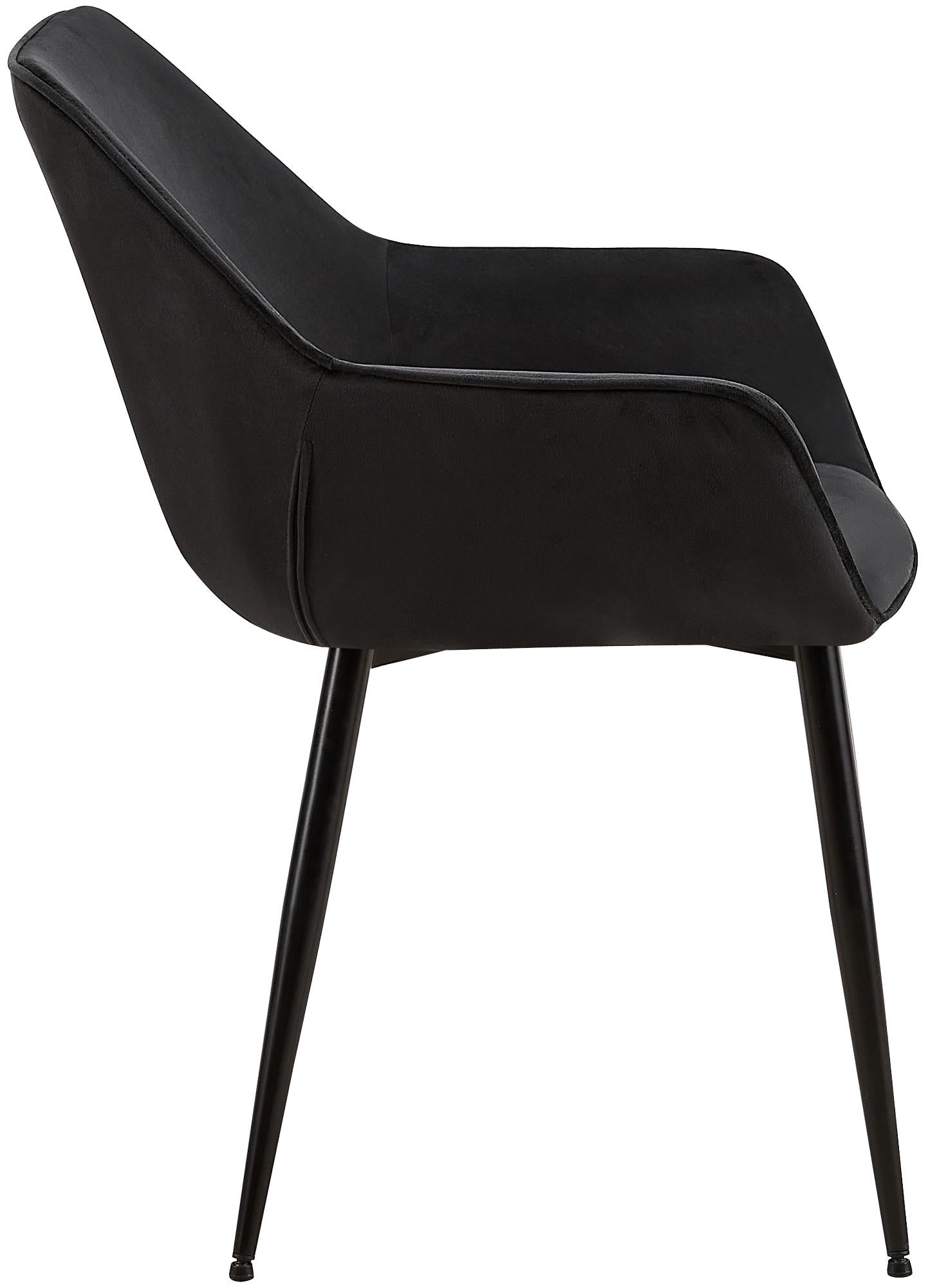 Het stevige vierpootsframe van zwart gepoedercoat metaal vormt een stabiele basis voor deze eetkamerstoelen. Dankzij de degelijke constructie hebben de stoelen een draagvermogen tot 150 kilogram. Vloerbeschermers voorkomen beschadiging van gevoelige vloeren.
