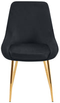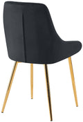 Set van 2 moderne eetkamerstoelen in zwart fluweel met gouden metalen onderstel