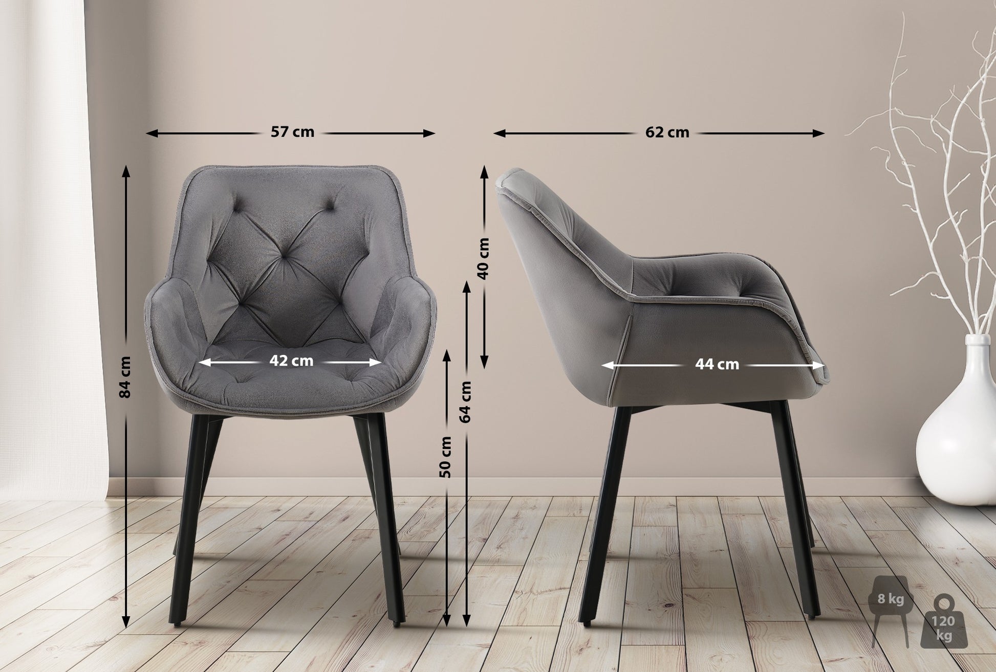 Set van 2 fluwelen eetkamerstoelen in donkergrijs