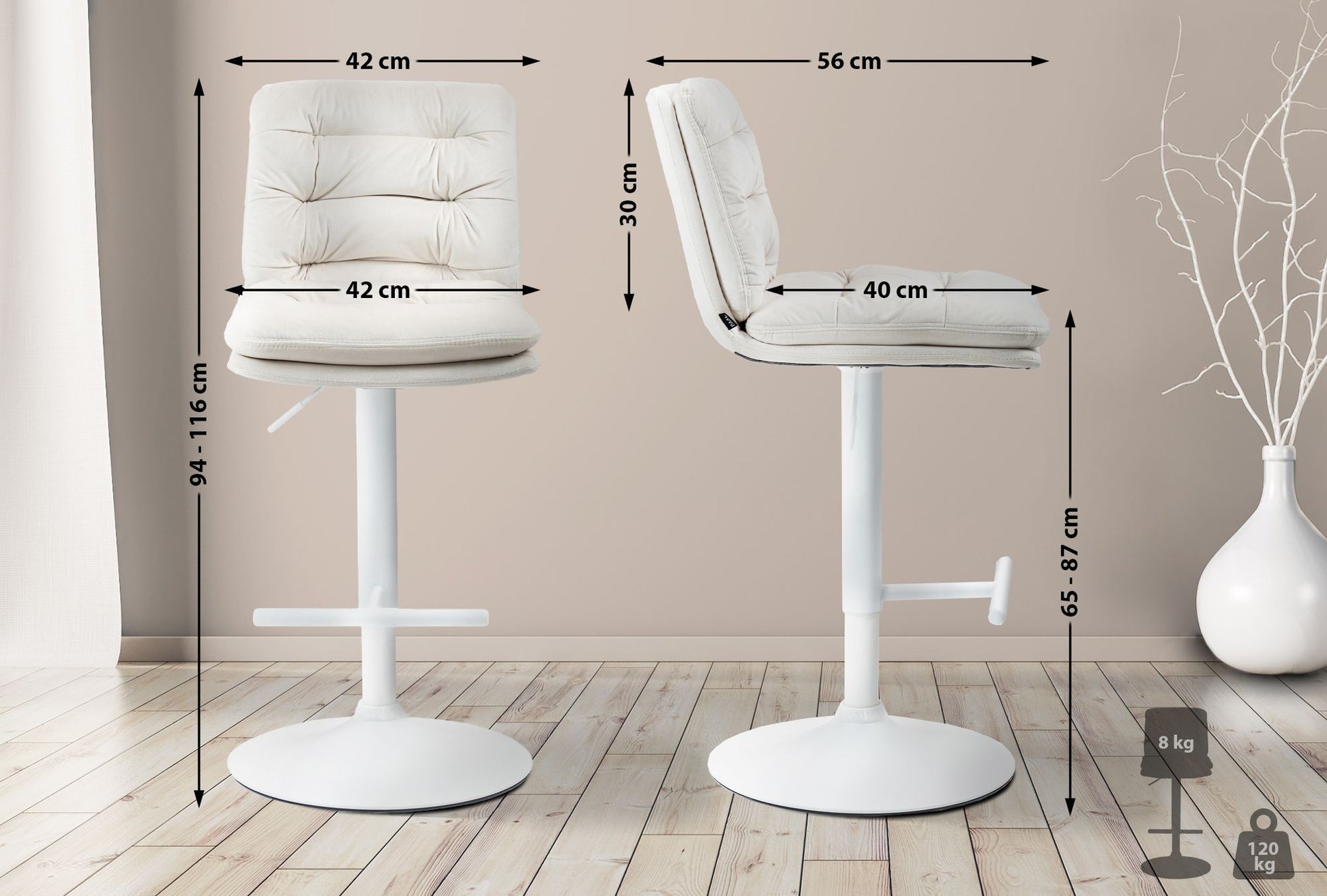 Het modieuze ontwerp, met een fluwelen bekleding en een verstelbaar metalen frame, geeft deze krukken een elegante uitstraling. Het frame kan in hoogte worden aangepast en 360 graden draaien voor optimale bewegingsvrijheid.