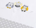 Babybedtextiel set 135x100 cm met babyrand – 3-delig Grijze uilen met grijze en gele borduursels