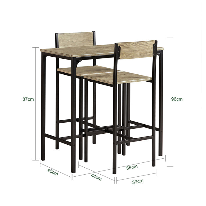 3-delige bartafelset - barkrukken - eetset - MDF fineerblad - metalen frame - lichtgewicht en duurzaam - eenvoudig onderhoud - tafel: 89 cm x 45 cm x 87 cm, krukken: 39 cm x 41 cm x 95 cm