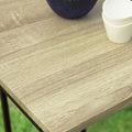 Stijlvol en modern ontwerpHet slanke metalen frame en het met MDF gefineerde tafelblad combineren moderne esthetiek met industriële duurzaamheid, waardoor het een blikvanger in elke kamer is.