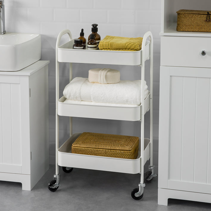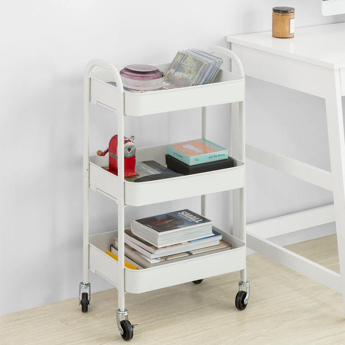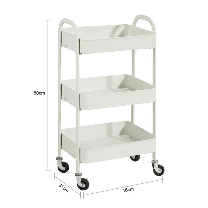 Optimale opslagoplossingDe trolley is voorzien van drie grote manden en maximaliseert uw opslagruimte, waardoor u moeiteloos een verscheidenheid aan spullen kunt ordenen en uw ruimte netjes kunt houden.