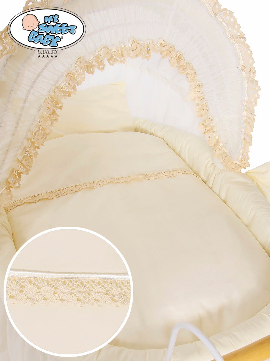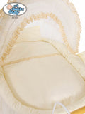 Deze hoogwaardige beddengoedset is speciaal ontworpen voor de wiegenmand of wickerbedje Elisa (model nr. 2100-171 of 72100-171). Gemaakt met de grootste zorg en van katoen van topkwaliteit, ideaal voor de gevoelige babyhuid.
