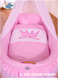 4-delige Hoes Set voor Wicker Mand Wiegbedje - Little Princess Roze