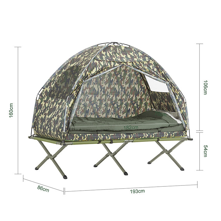 4-in-1 Campingtent Kit - Eén persoon - Pop-up tent - Kampeerbed - Draagbare ligstoel - Duurzaam Oxford Nylon - Gemakkelijk transport - Geïntegreerd klamboe - 193 cm x 160 cm x 86 cm - Camouflagekleur