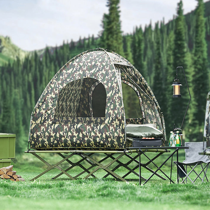4-in-1 kampeertentbundel voor 2 personen - Pop-up tent - Kampeerbed met ligstoel - Duurzaam Oxford Nylon - Waterdicht - Eenvoudige montage - 193 cm x 188 cm x 145 cm - Camouflagekleur