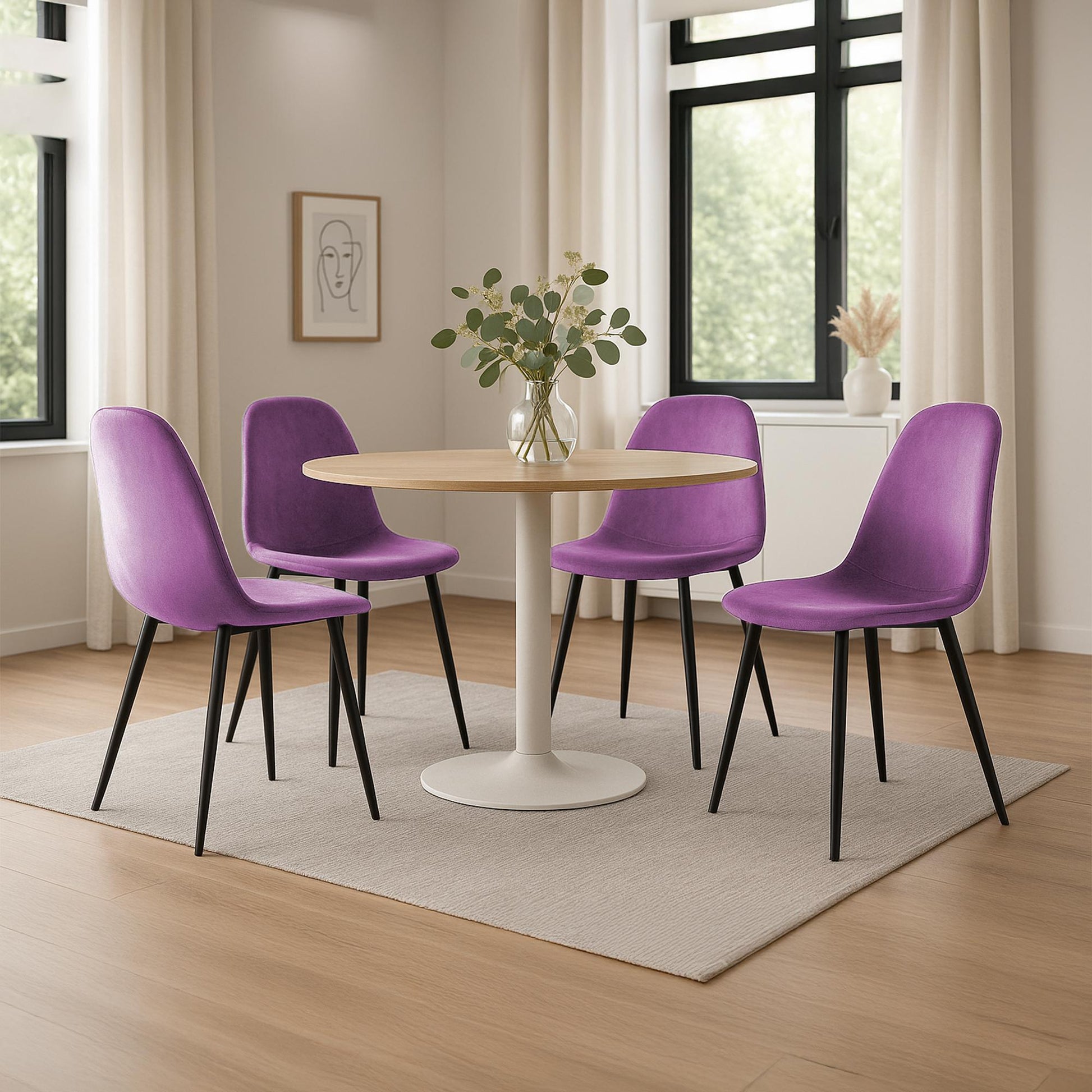 Set van 4 eetkamerstoelen purper, Fluweel Set van 4 moderne, comfortabele en onderhoudsvriendelijke eetkamerstoelen