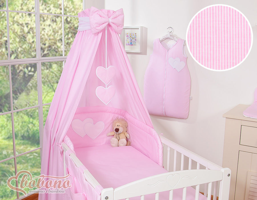 5-delige Beddengoedset met Hemel - Hanging Hearts Roze Strepen
