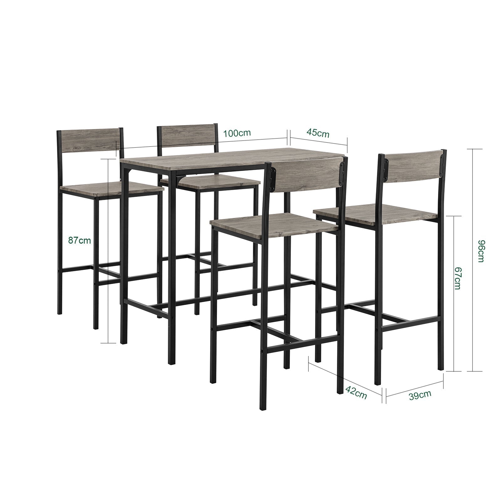 5-delige bartafelset - keukeneetset - tuinmeubelen - duurzaam MDF en PVC blad - stevig metalen frame - tafel 100 cm x 87 cm x 45 cm, krukken 39 cm x 95 cm x 41 cm