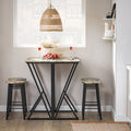 Duurzame en stevige materialenDeze eetset is gebouwd met een metalen frame en een blad van MDF-fineer en belooft duurzaamheid en stabiliteit. De gepoedercoate afwerking zorgt ervoor dat hij bestand is tegen de ontberingen van dagelijks gebruik, terwijl hij zijn strakke uiterlijk behoudt.