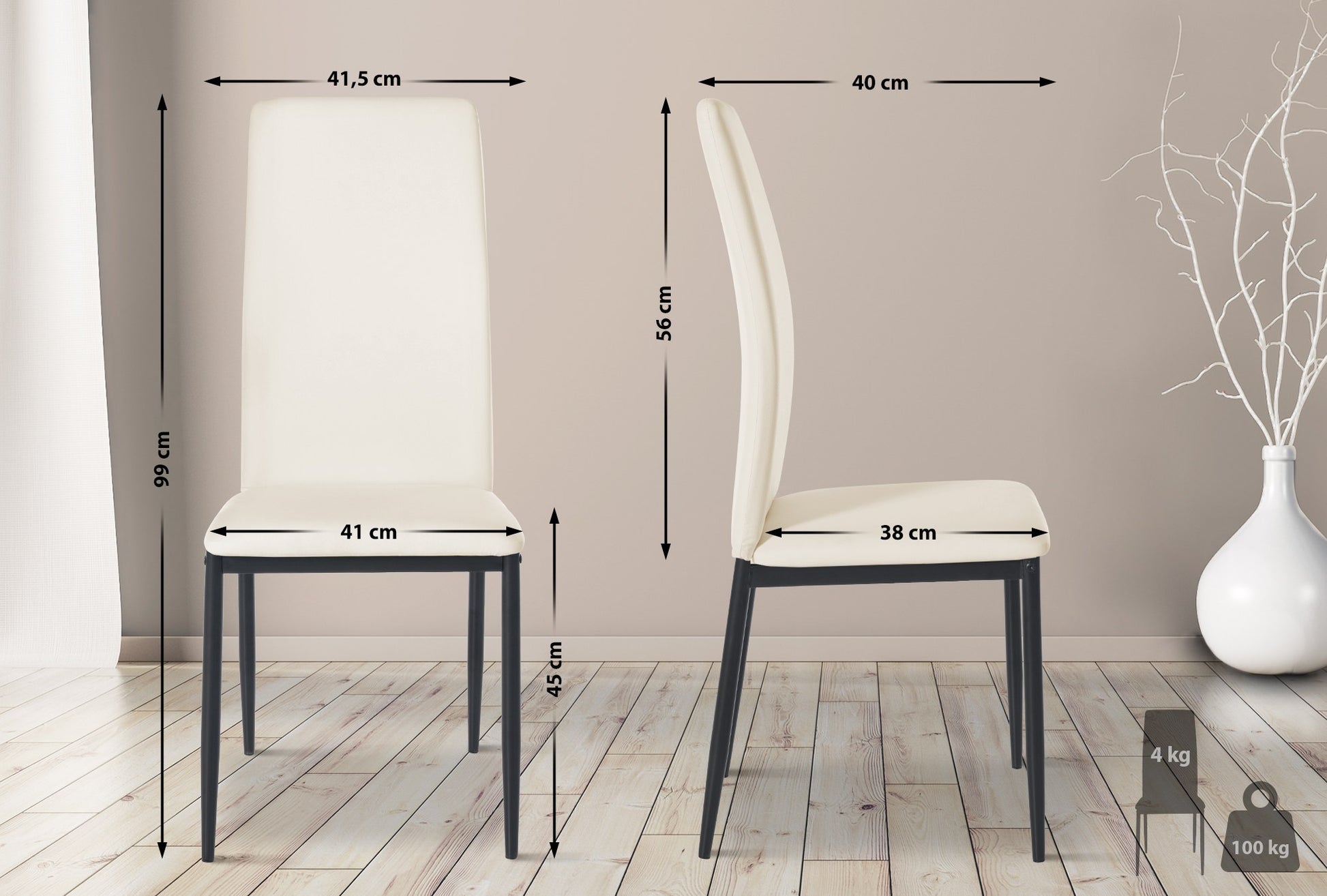 De set van 6 eetkamerstoelen biedt een stijlvol accent aan moderne leefruimtes dankzij de bekleding in kunstleer of fluweel. De hoge rugleuning en de comfortabele, goed gevulde zitting zorgen ervoor dat je zelfs langer comfortabel kunt zitten. Met de vloerbeschermers aan de onderkant van de poten worden vloeren beschermd tegen krassen en schade. Daarnaast zijn de stoelen eenvoudig schoon te maken dankzij de onderhoudsvriendelijke materialen.